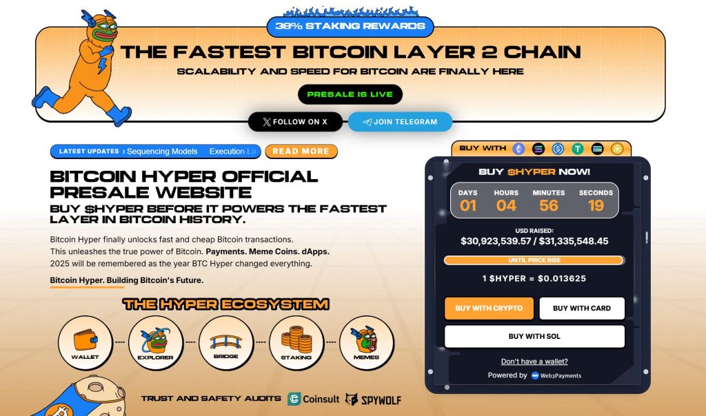 Bitcoin Hyper ($HYPER) is bringing a new phase to the BTC ecosystem. While BTC remains the gold standard for security, Bitcoin Hyper adds what it always lacked: Solana-level speed. The result: lightning-fast, low-cost smart contracts, decentralized apps, and even meme coin creation, all secured by Bitcoin.