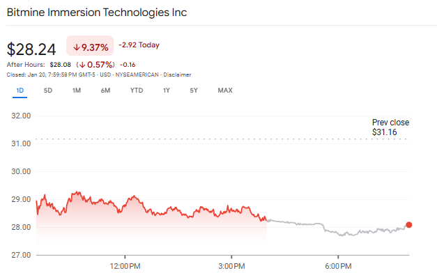 Following the news, Bitmine stock is trading slightly above $28, far below its mid-2025 peak, yet it remains one of the most actively traded stocks in the United States, with average daily dollar volume around $1.5 billion.