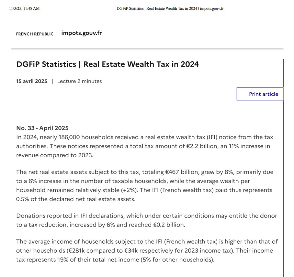 The current IFI raised €2.2 billion in 2024 from around 186,000 households, roughly half the €4.2 billion once generated by the former ISF in 2017, according to data from France’s tax administration (DGFiP).